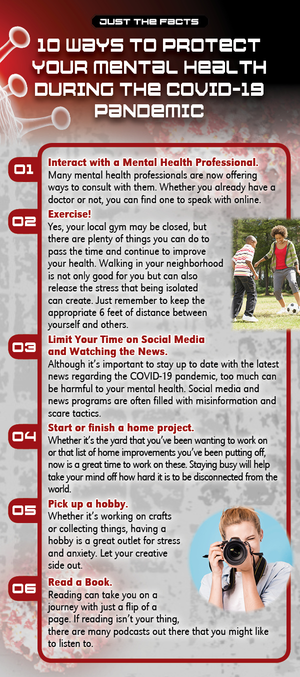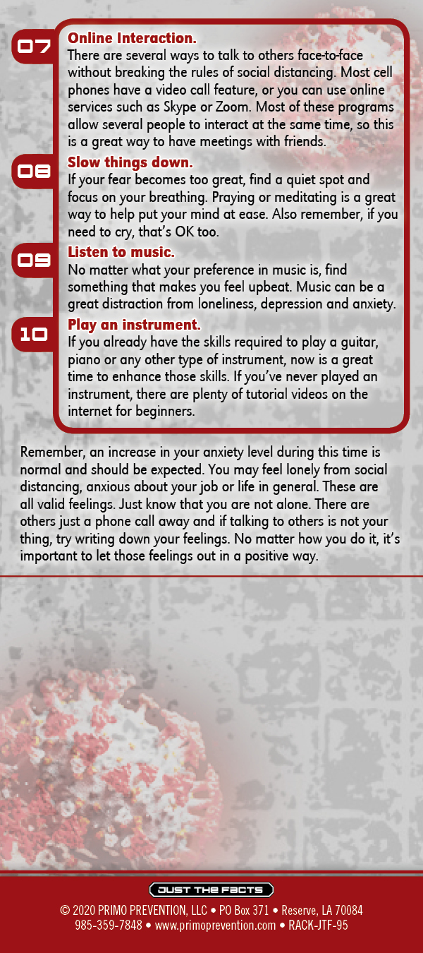 This rack card gives the reader 10 tips on how to protect their mental health during this COVID-19 pandemic and especially with the new “Social Distancing” rules set in place.