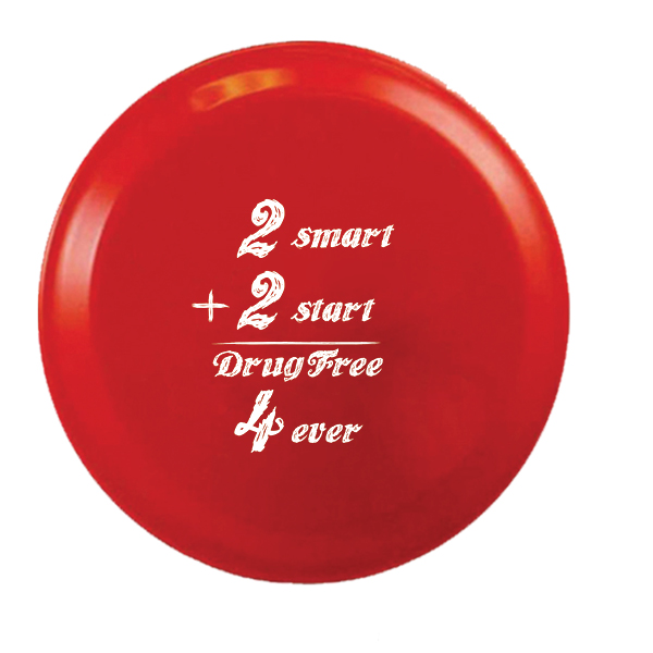 9 inch Flying Disks with the Drug Prevention Month message “2 Smart 2 Start: Drug Free 4 Ever!“.
