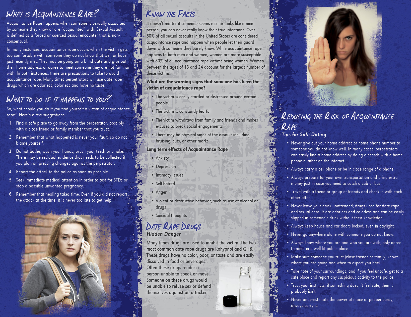 Acquaintance Rape, Safe Dating & Drugs pamphlet.