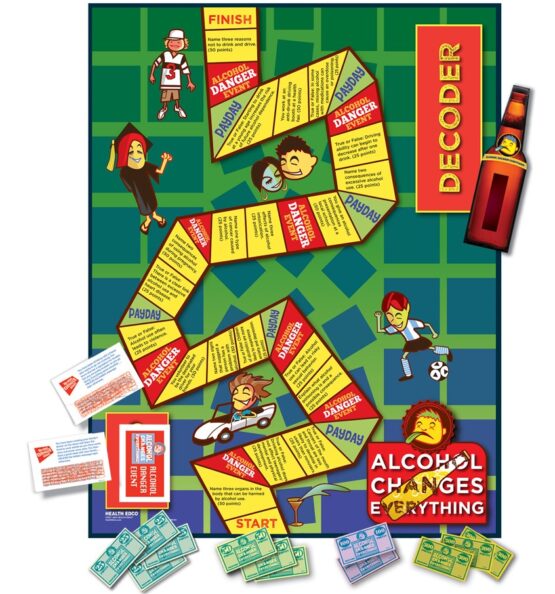 Educational and fun, this board game helps players learn how life can change instantly and negatively if they abuse alcohol. Players earn points by moving through the game and answering questions about the consequences of alcohol abuse.