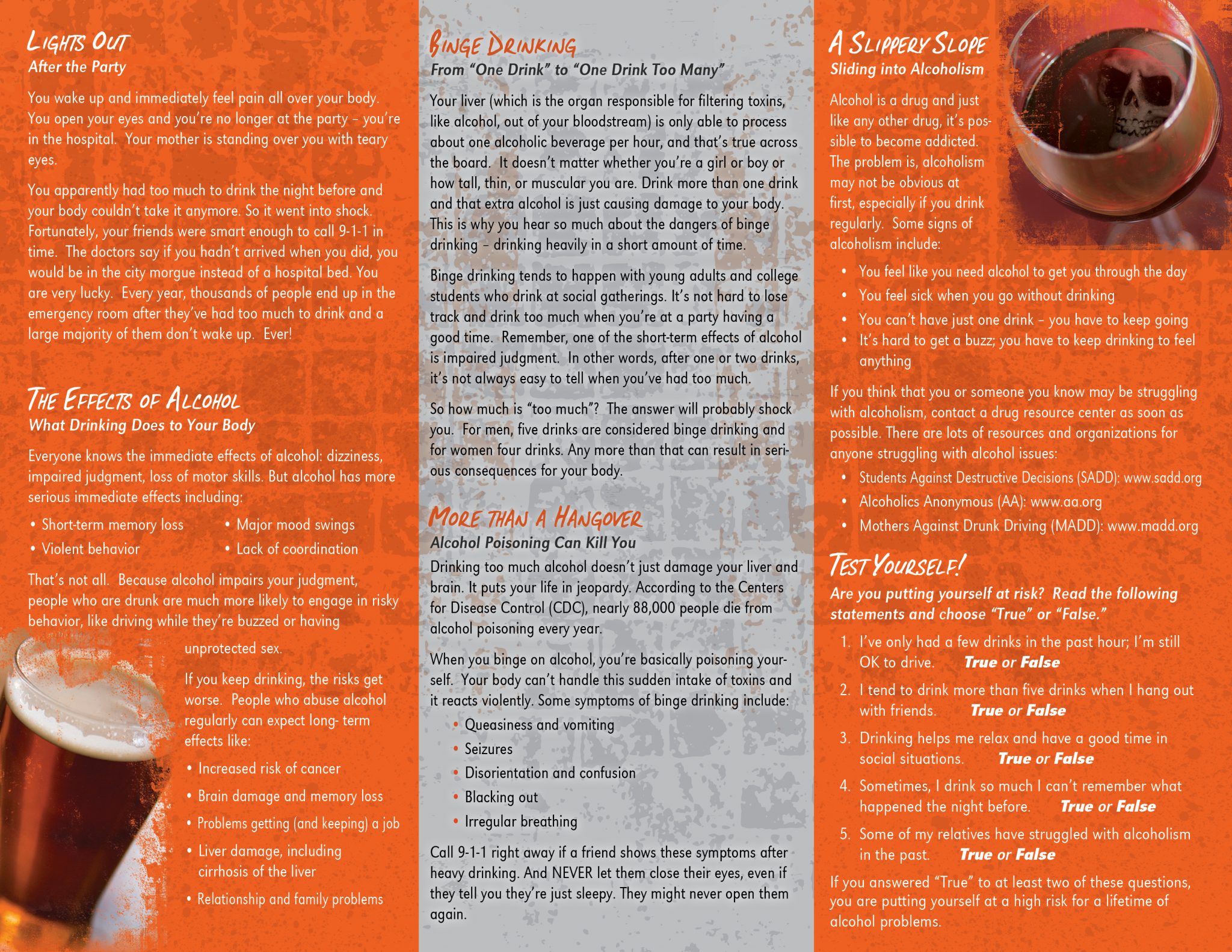 Learn the dangers of binge drinking, driving drunk or buzzed, alcohol poisoning and much more.