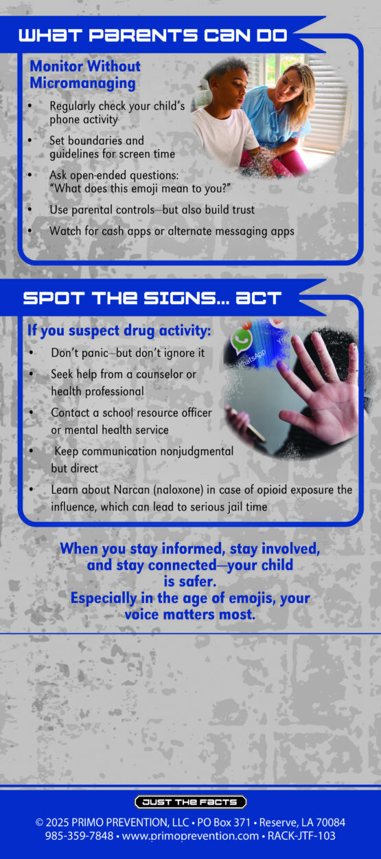 This rack card teaches you what to look for when it comes to these “hidden drug emojis” like: