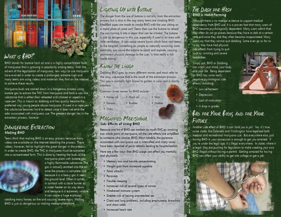 This pamphlet shows how Dabbing is way more hazardous to your health and safety than you may realize.