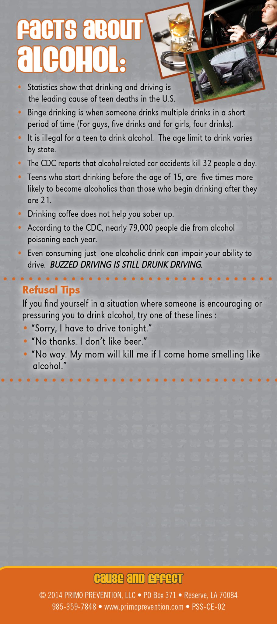 This rack card is a quick reference for anyone wanting to know the facts about Alcohol, like: