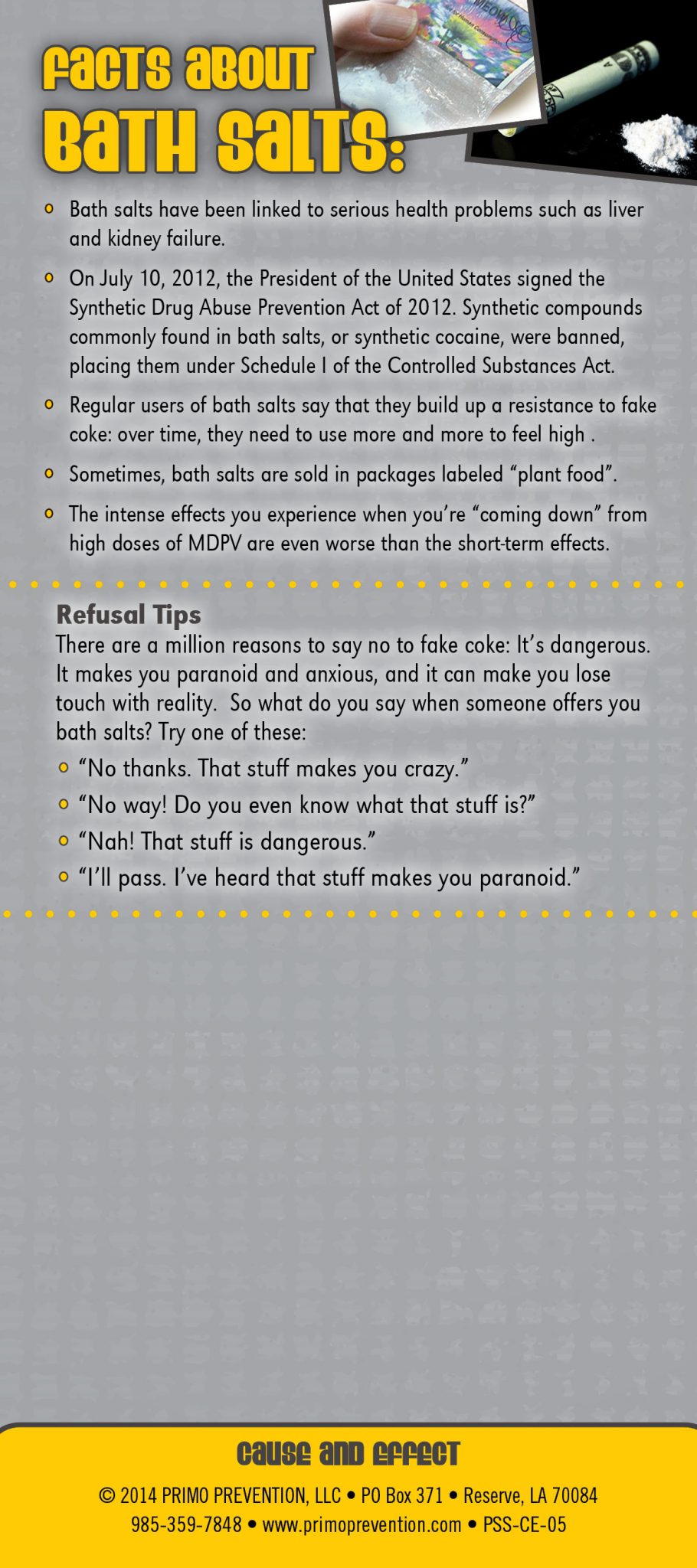 This rack card is a quick reference for anyone wanting to know the facts about Bath Salts, like: