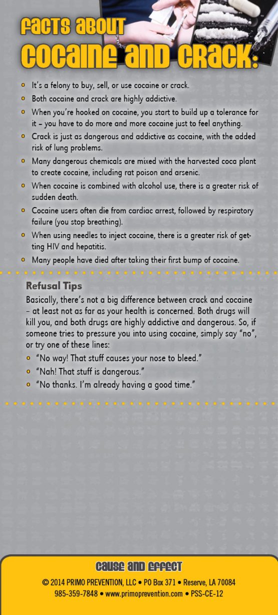 This rack card is a quick reference for anyone wanting to know the facts about Cocaine and Crack, like: