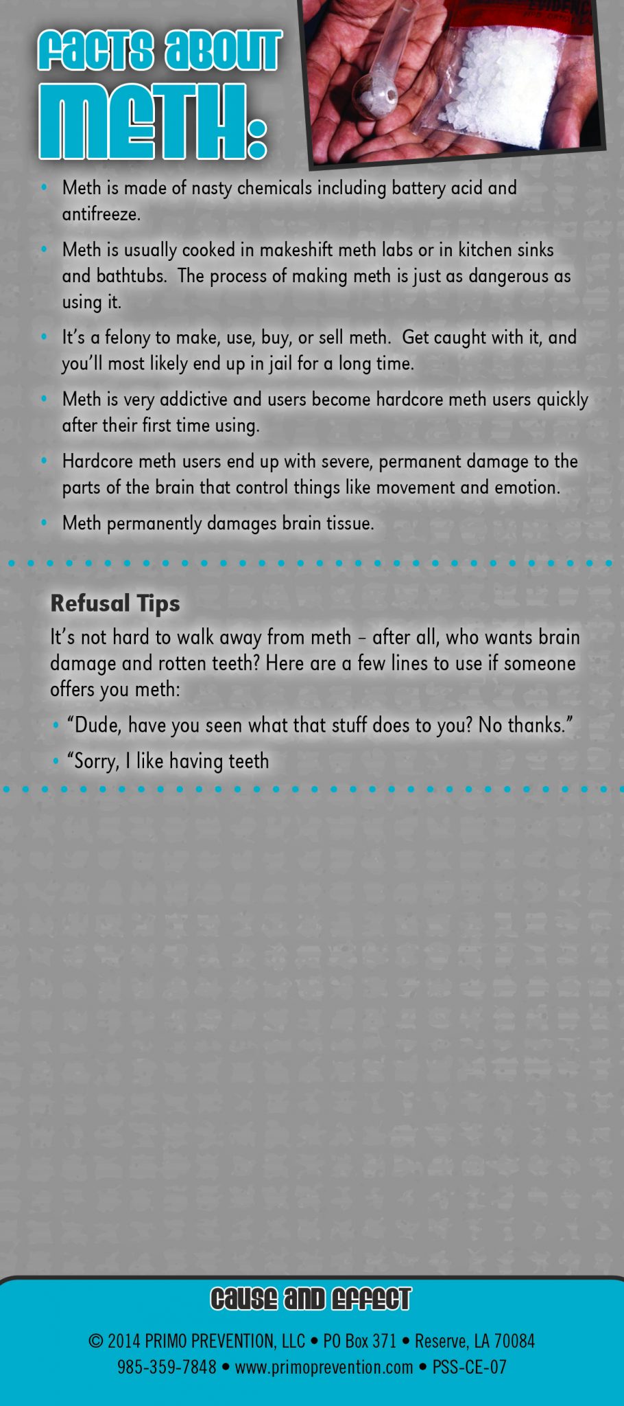 Cause & Effect Rack Card: Meth (Methamphetamine)