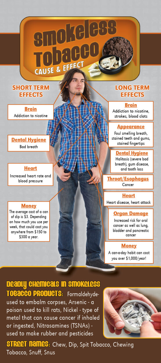 There are 3 major types of smokeless tobacco products: chewing/spit tobacco, snuff and snus, but the dangers are all the same. Learn more about: