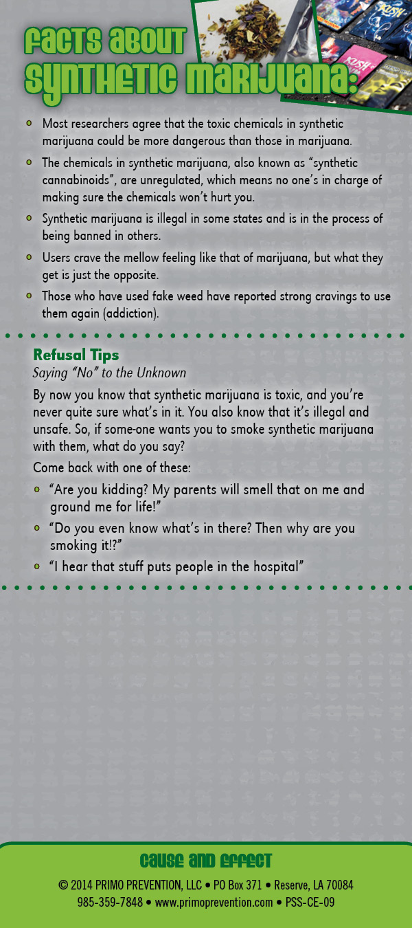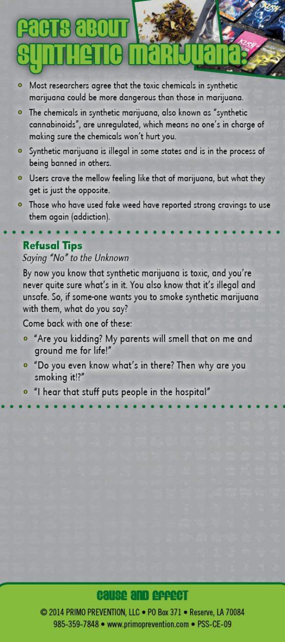 This rack card is a quick reference for anyone wanting to know the facts about Synthetic Marijuana, like: