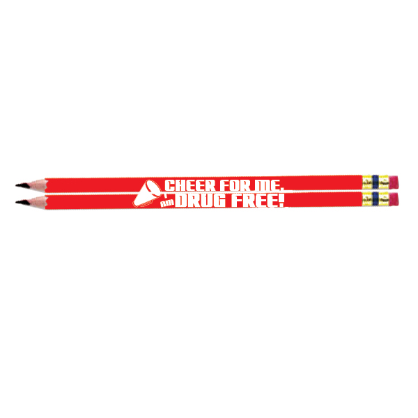 Red pencil with the Drug Prevention message “Cheer For Me, I Am Drug Free” with white imprint.