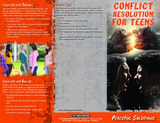 This pamphlet gives teens helpful hints and ideas on how to deal with bullies, resolve conflict with teachers, parents and other teens.