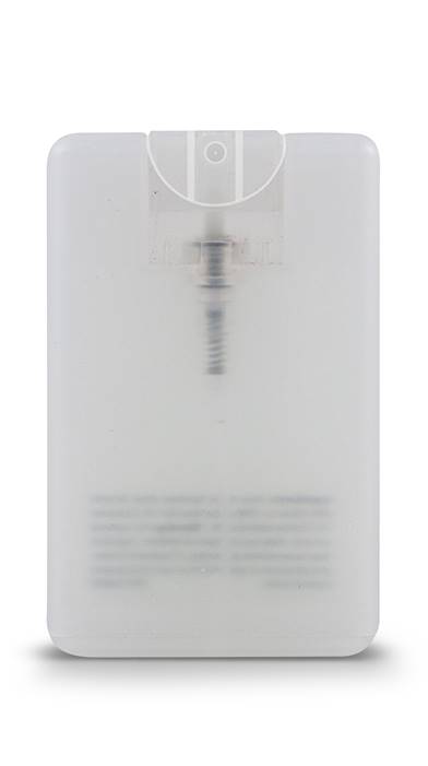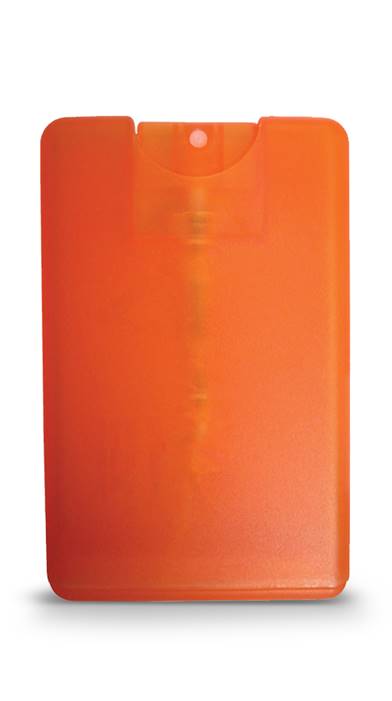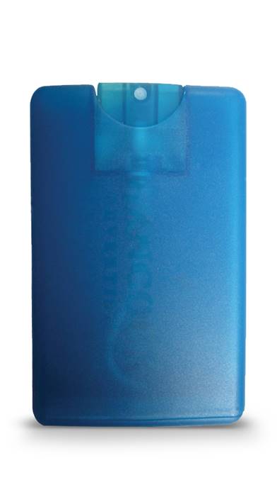 These translucent plastic credit card sized hand sanitizer sprays can be fully customized with your logo. 62% Alcohol Content. 20ml.