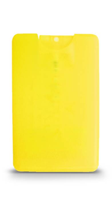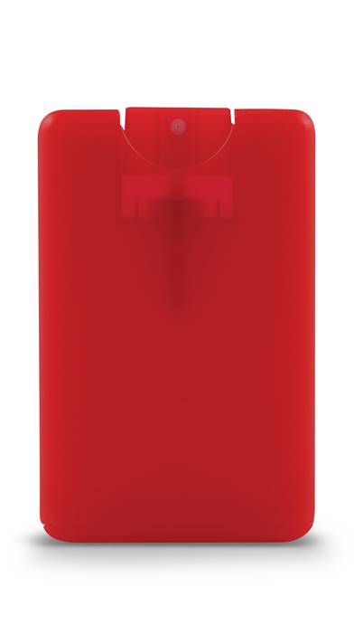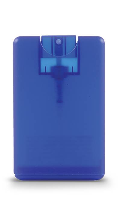 These translucent plastic credit card sized hand sanitizer sprays can be fully customized with your logo. 62% Alcohol Content. 20ml.