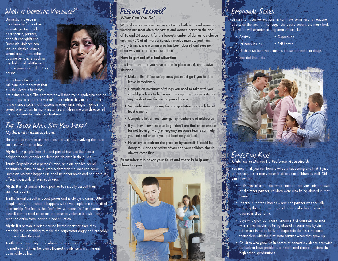 What is domestic violence and what can you do if you are a victim? This pamphlet will answer these questions and much more, including how to tell if someone is being abused.
