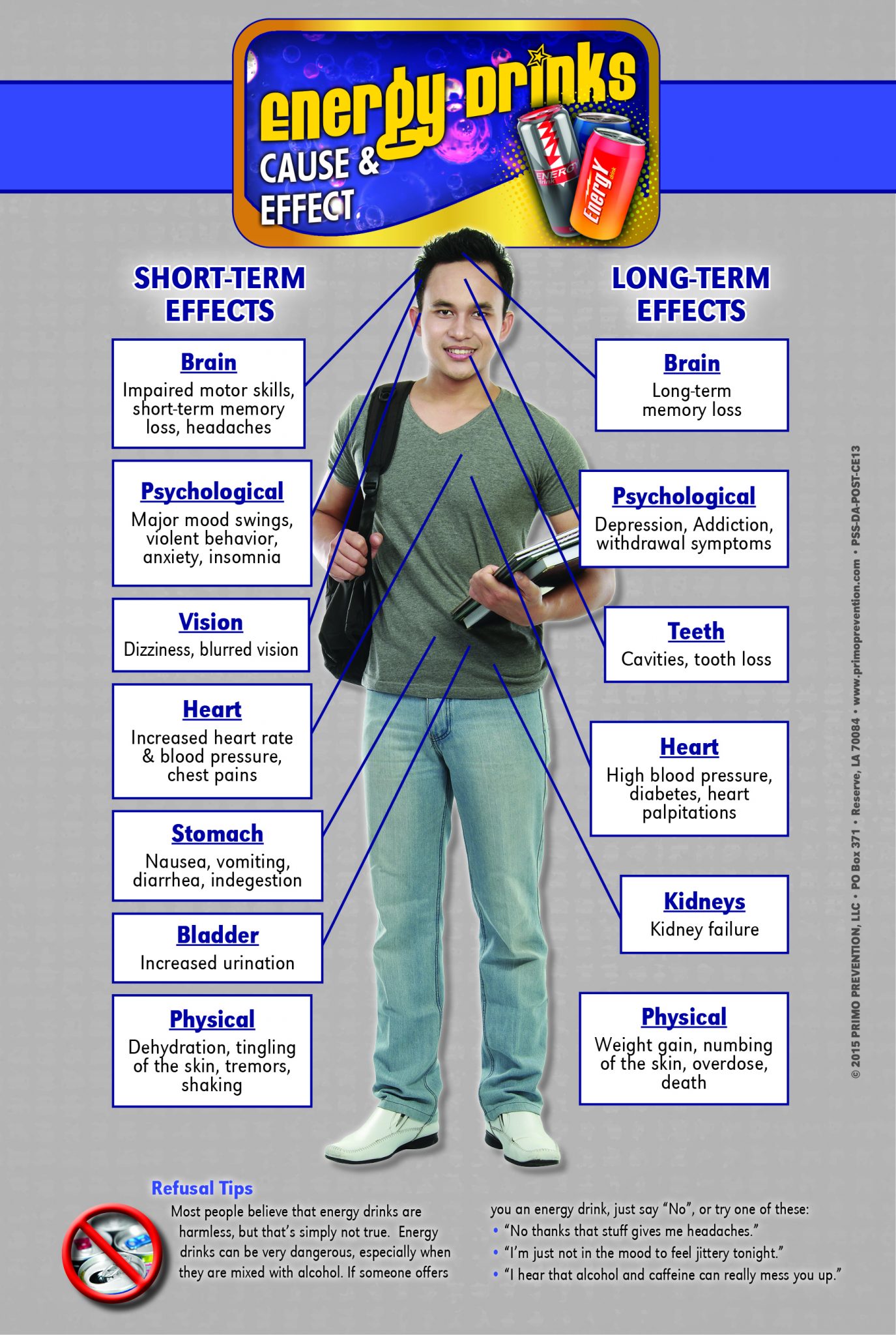 This Cause & Effect Mini Poster helps educate others on the effects that Energy Drinks can have on the body & mind. Also includes refusal tips for teens.