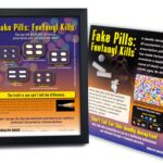 This 3-D display (10″ x 13¼” x 7″) uses sculpted, realistic facsimiles of five prescription pills (front and back) to demonstrate that fake pills can look identical to real prescription medications but lead to overdose and death with just one pill.