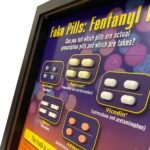 Featuring realistic, sculpted models of five commonly abused prescription pills secured behind plexiglass, this framed, 3-D display warns viewers that they cannot tell the difference between real and fake prescription medications simply by looking at them.