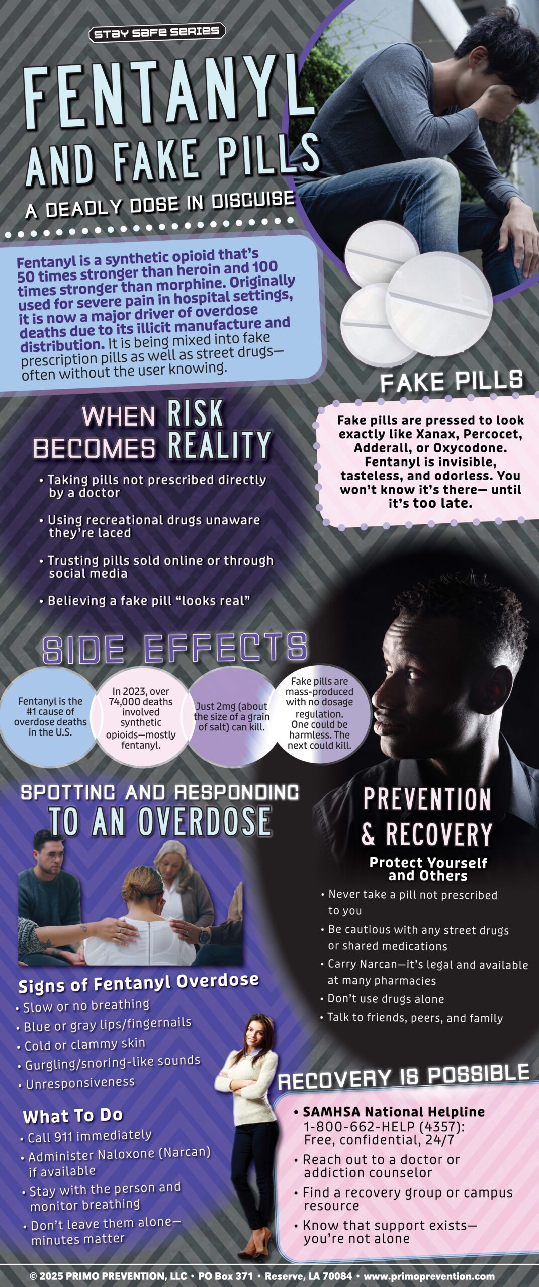 Portable, eye-catching, and professional. Use this colorful retractable banner to educate others on the dangers of using Fake Pills.