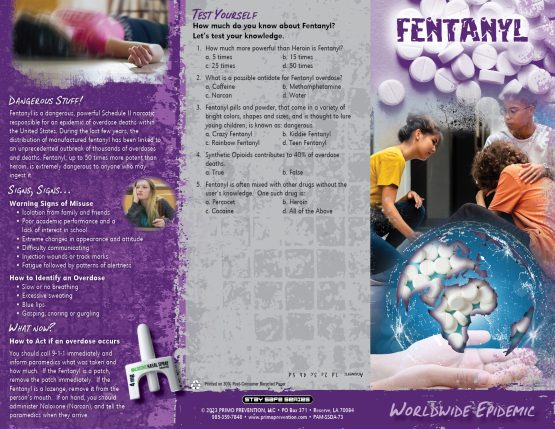 This pamphlet discusses how Fentanyl is being mixed with other illicit drugs, a new form of Fentanyl geared to kids called Rainbow Fentanyl, and much more.