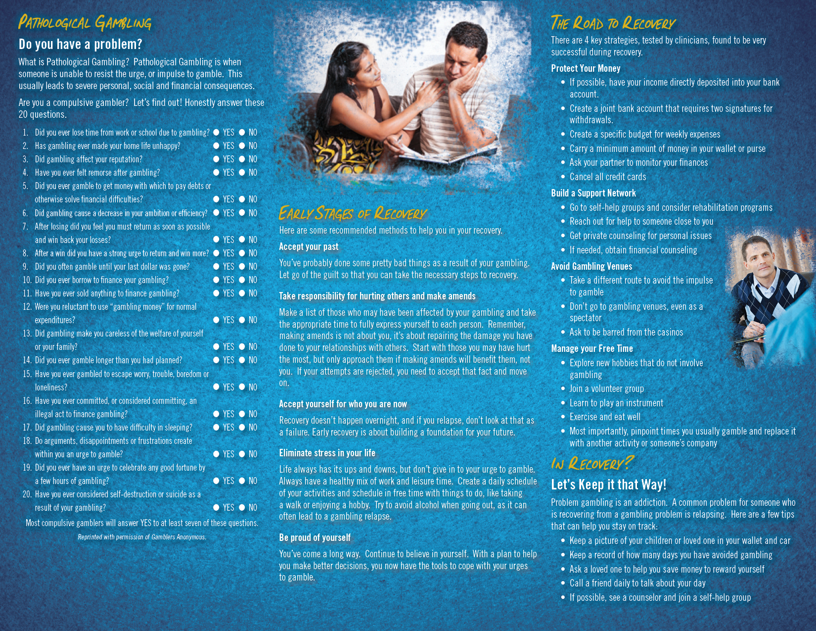 You’ve decided to take control of your life and quit gambling. It’s not easy, but with the tools provided in this pamphlet, your recovery from gambling addiction will last a lifetime.