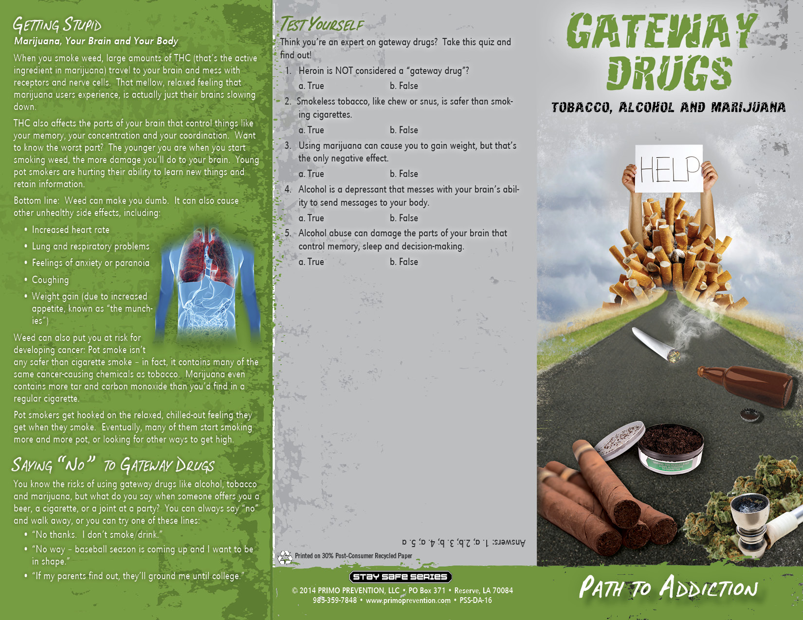 This pamphlet not only discusses how using these may lead to other drugs, but it also informs the reader about why trying “gateway drugs” is just a bad idea.