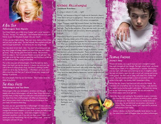 This pamphlet discusses the dangers of LSD and PCP and how even “natural” hallucinogens come with some pretty frightening side effects.