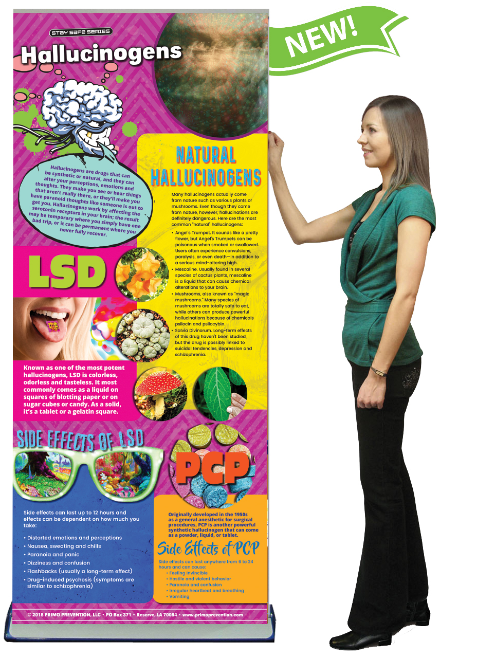 Portable, eye-catching, and professional. Use this colorful retractable banner to help educate others on the dangers of Hallucinogens.