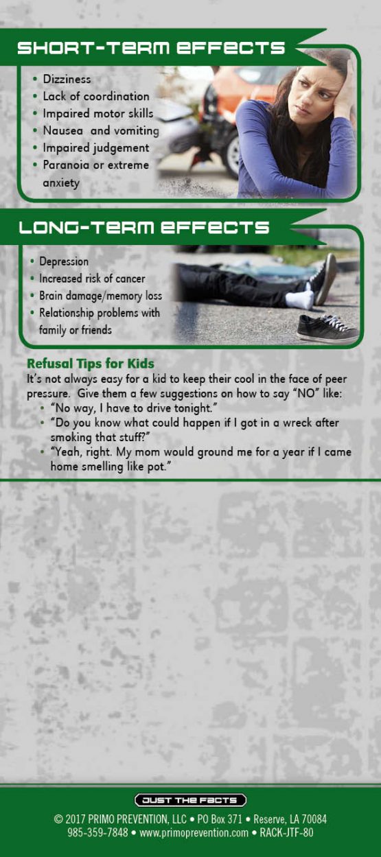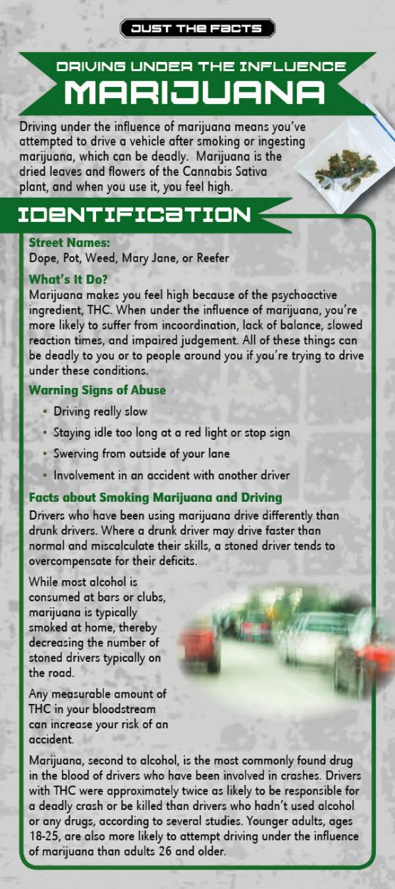 This rack card is a quick reference for anyone wanting to know the facts about driving under the influence of marijuana.