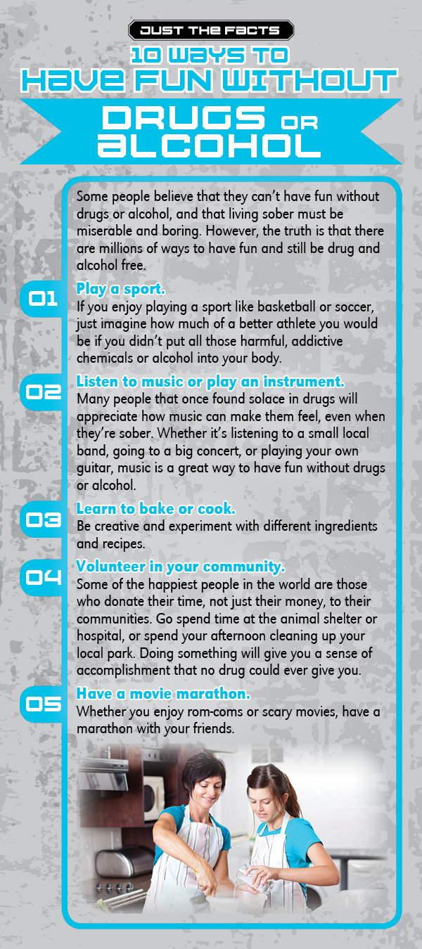 10 suggestions to show kids that you can have fun without using drugs or alcohol.