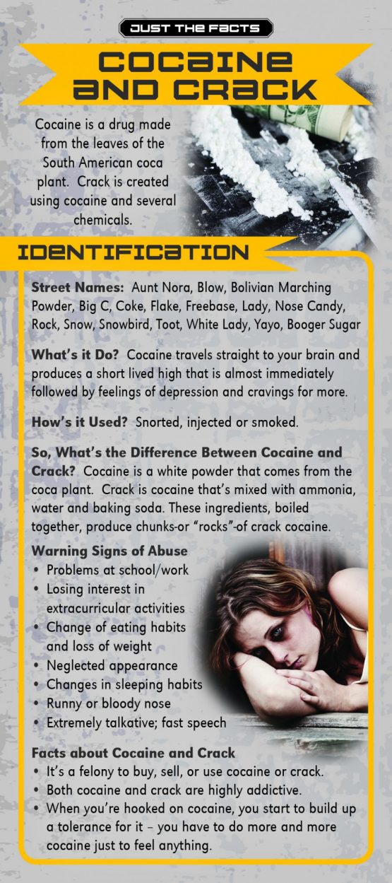 Cocaine and crack are highly addictive drugs. When someone begins using, the need for the drug takes over, and nothing else matters.