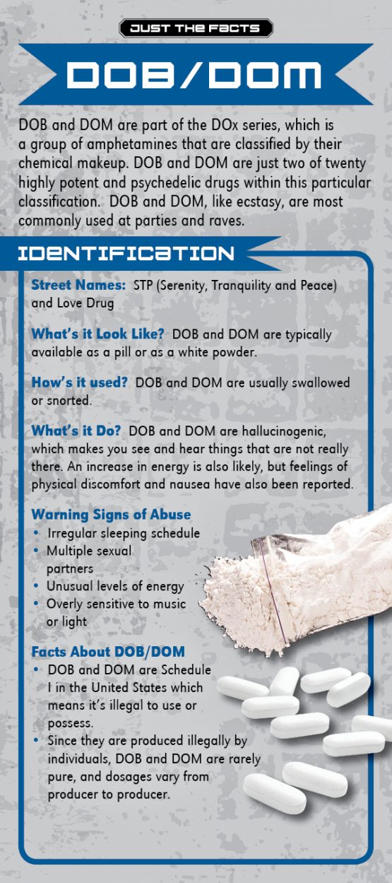 This rack card is a quick reference for anyone wanting to know the facts about the drug DOB/DOM, like: