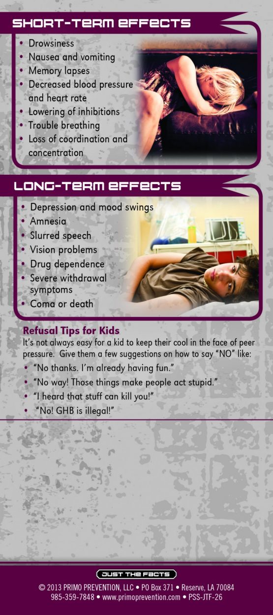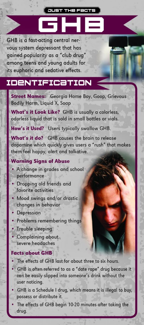 GHB is often referred to as a “date rape” drug because it can be easily slipped into someone’s drink without the user noticing. This rack card is a quick reference for anyone wanting to know the facts about the drug GHB, like: