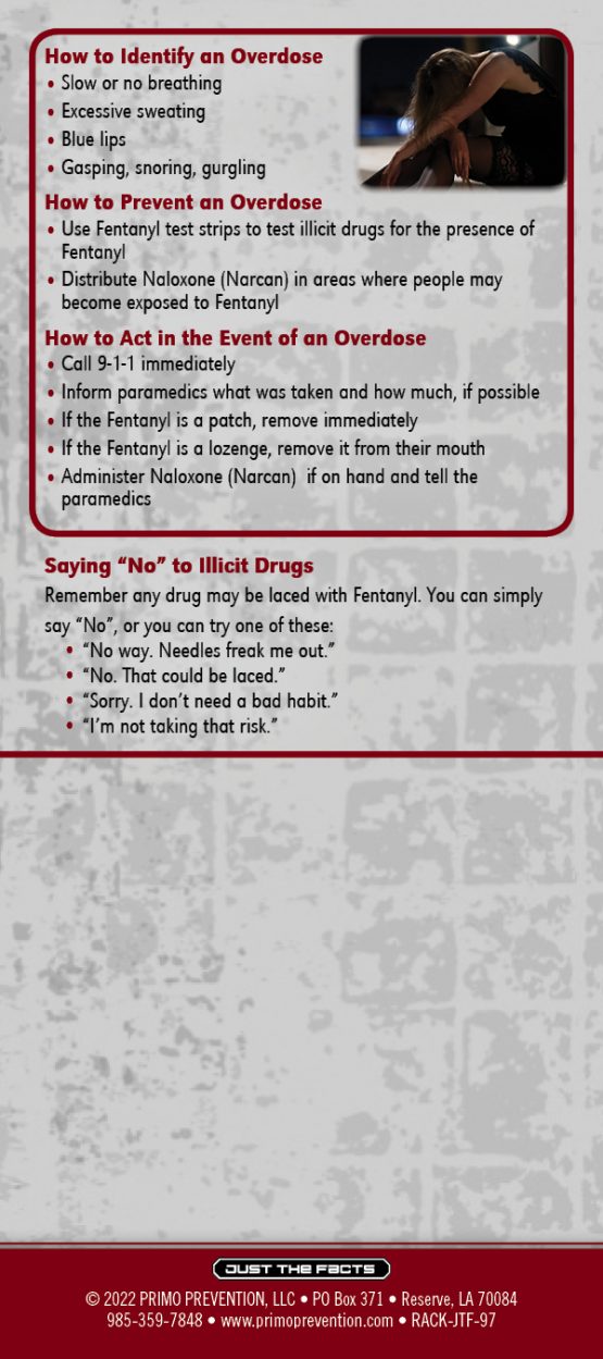 This rack card is a quick reference for anyone wanting to know the facts about Fentanyl, like:
