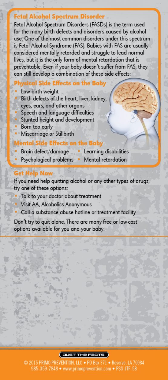 This rack card is a quick reference for anyone wanting to know the facts about drinking alcohol while pregnant, like: