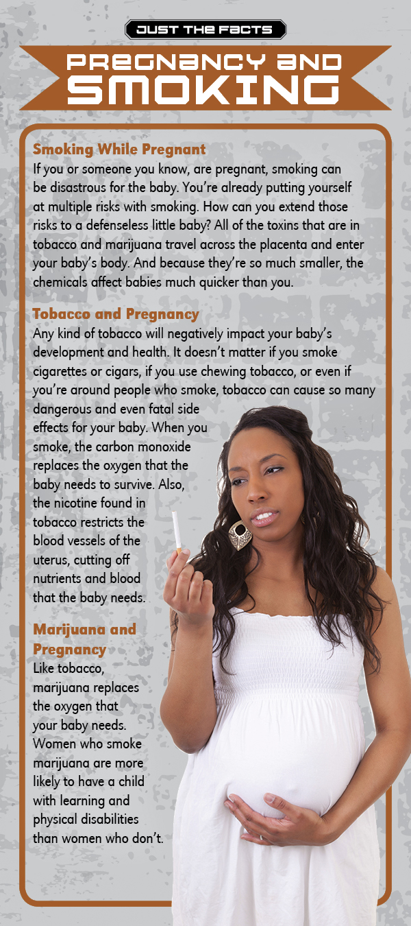 This rack card is a quick reference for anyone wanting to know the facts about smoking cigarettes or marijuana while pregnant.