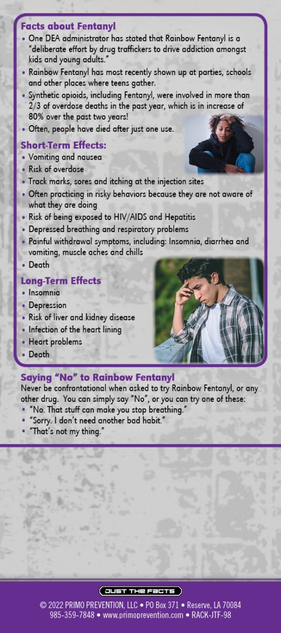 This rack card is a quick reference for anyone wanting to know the facts about Rainbow Fentanyl, like: