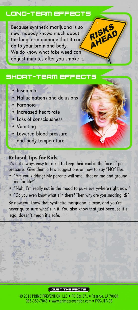 This rack card is a quick reference for anyone wanting to know the facts about Synthetic Marijuana, like: