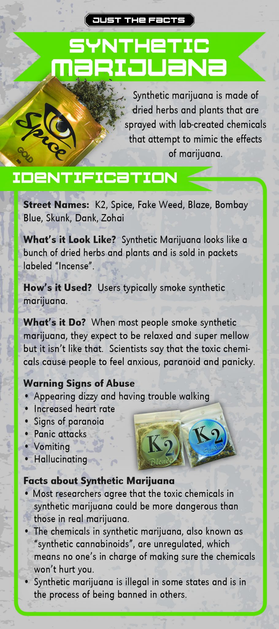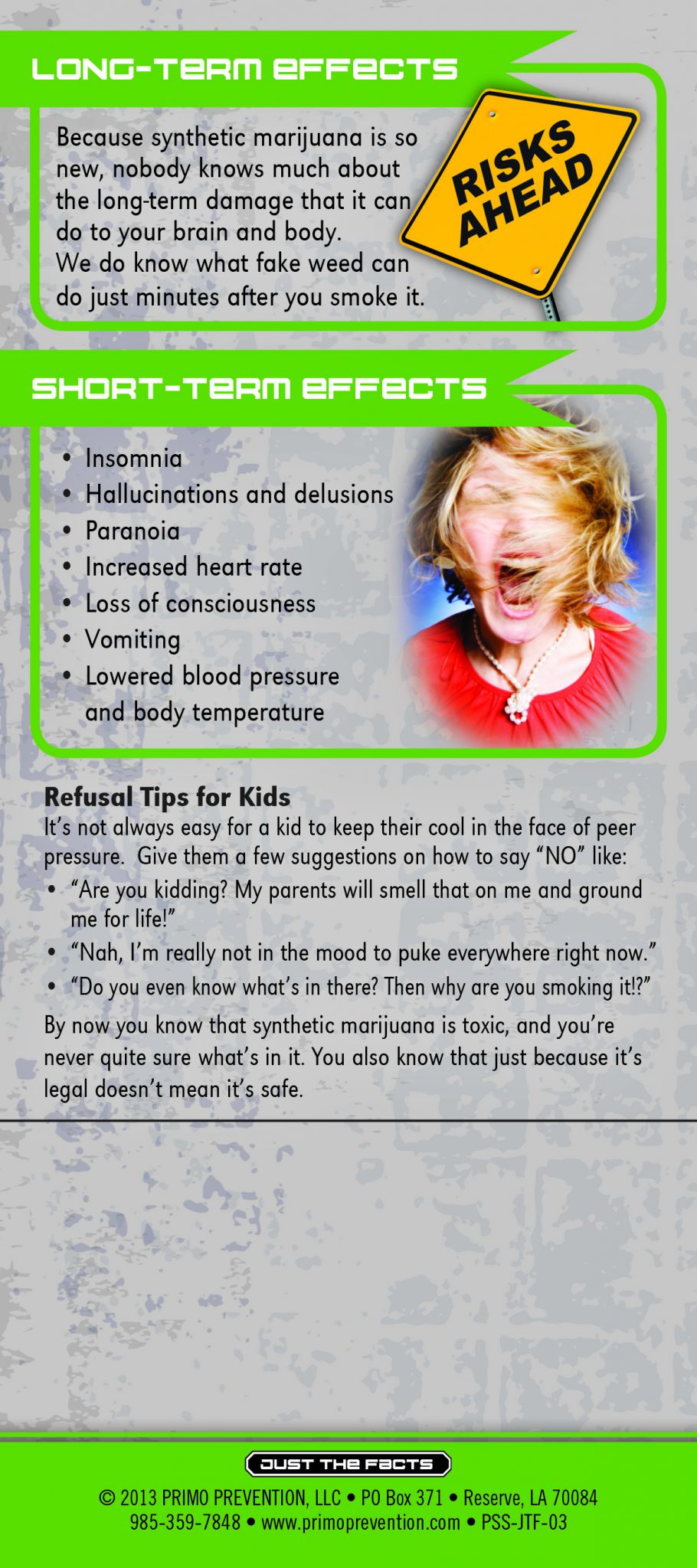 This rack card is a quick reference for anyone wanting to know the facts about Synthetic Marijuana, like: