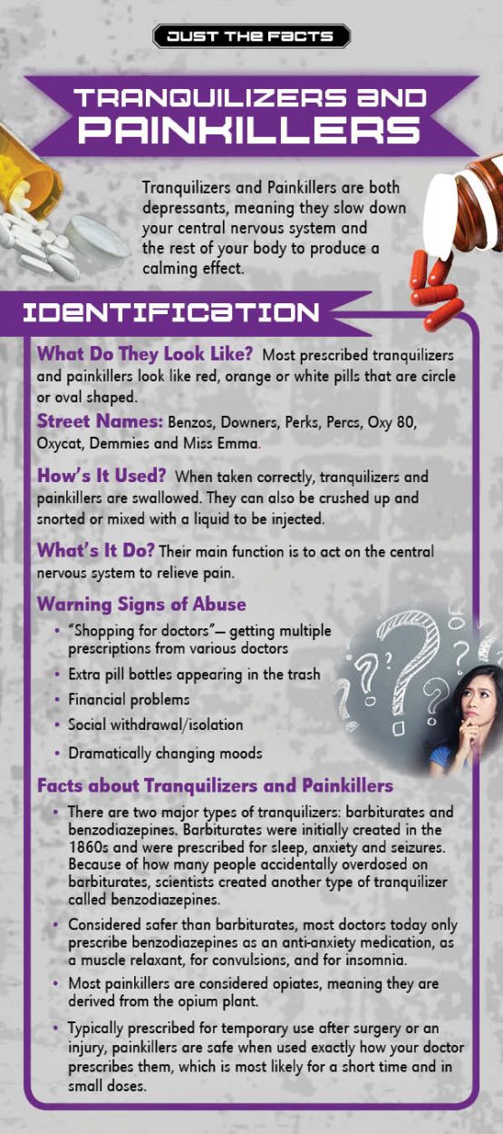 This rack card is a quick reference for anyone wanting to know the facts about Tranquilizers & Painkillers, like: