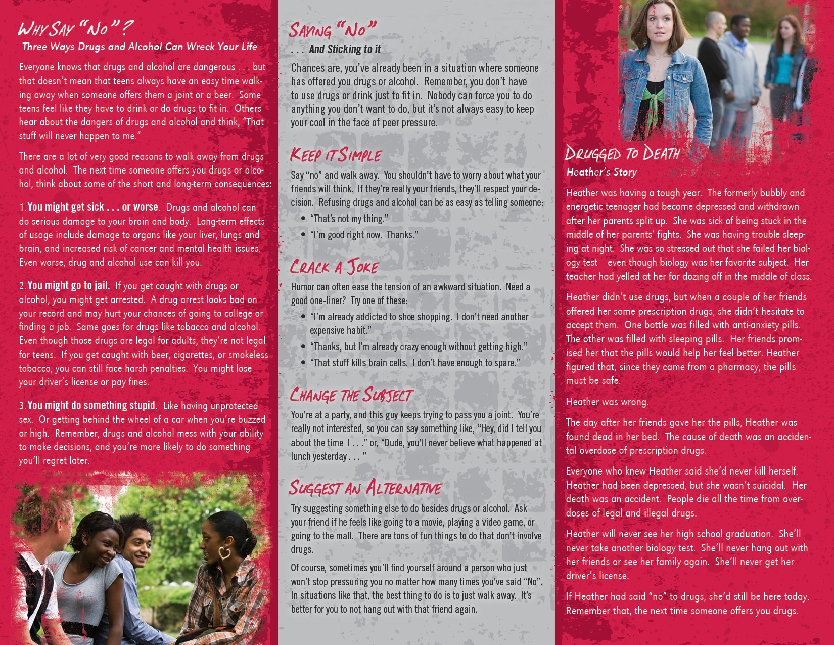 Answer: Avoiding them altogether. This pamphlet gives teens examples of other activities they can do instead of drugs.