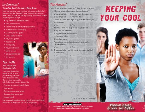 Gives kids great tips on how to say “no” to drugs, alcohol & tobacco, like being honest, making a joke, ignoring or suggesting something else to do.