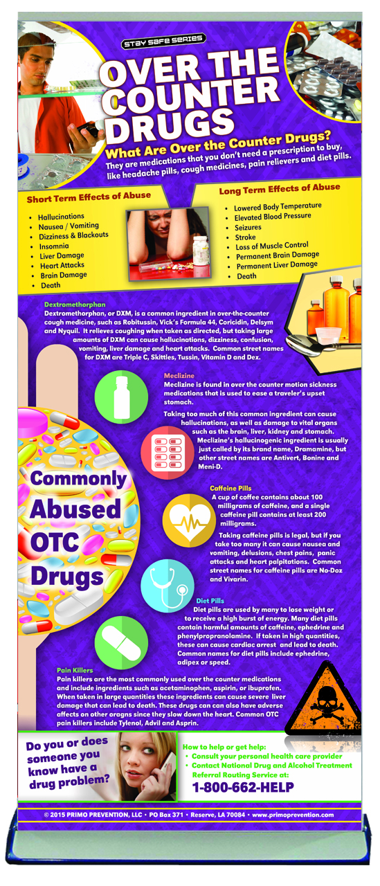 Portable, eye-catching, and professional. Use this colorful retractable banner to help educate others on the dangers of abusing Over the Counter Drugs.