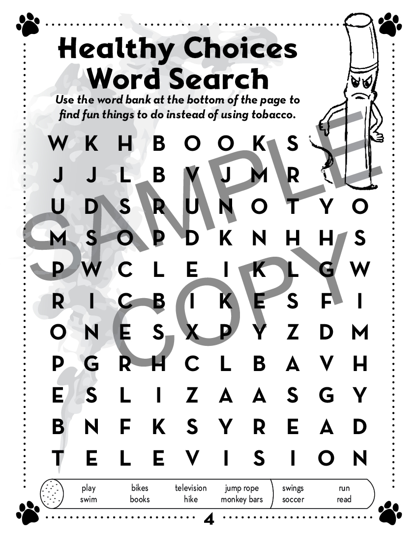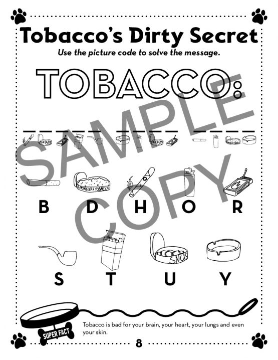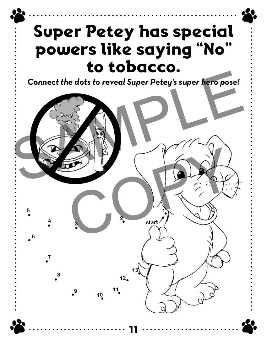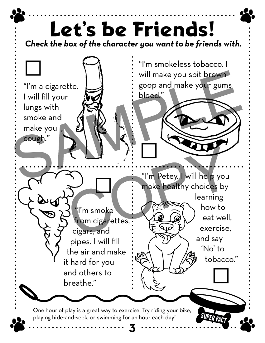 Meet our new hero “Petey the Pup”! He teaches kids the dangers of tobacco. This activity book is full of great activities that are fun for kids while teaching them why tobacco is so bad for them.