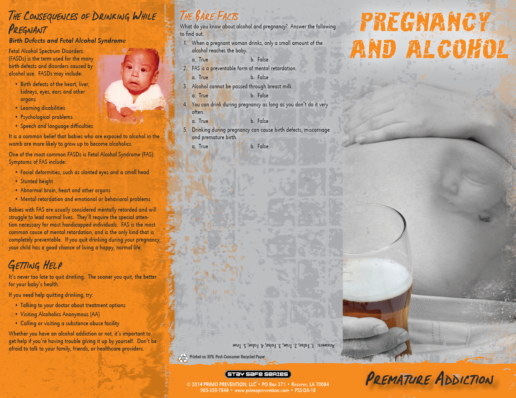 Pregnancy & Alcohol: Premature Addiction Pamphlet