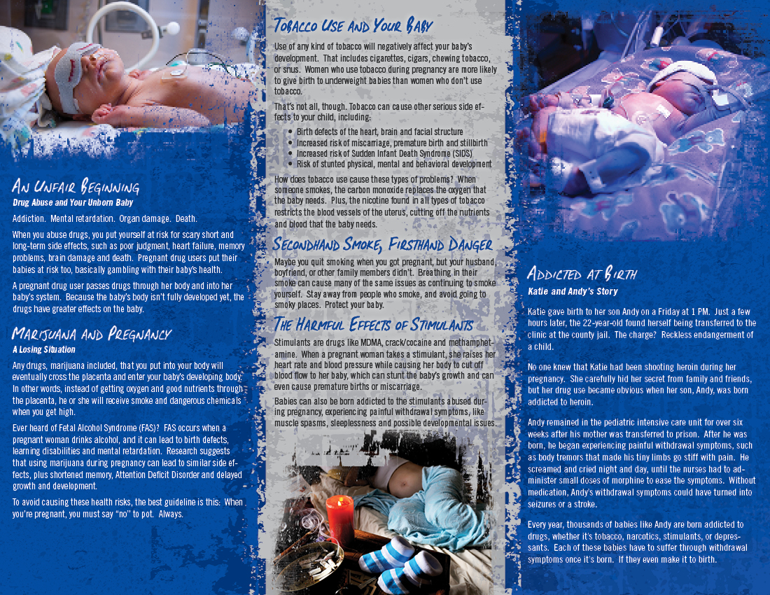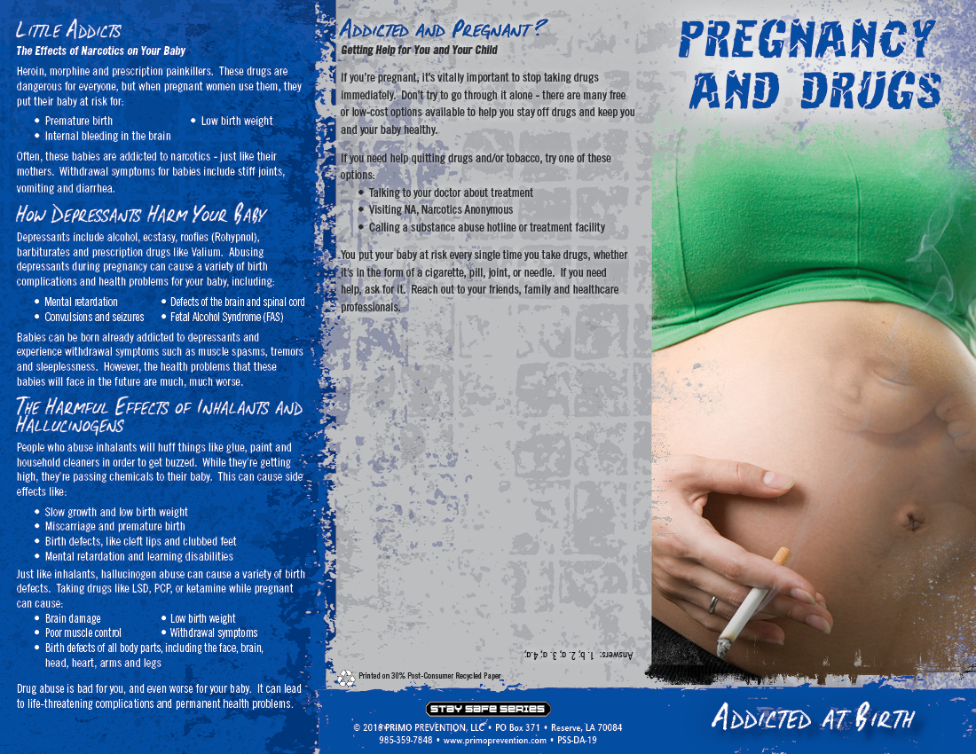 This pamphlet informs the reader that there are NO safe drugs to use when pregnant, including tobacco.