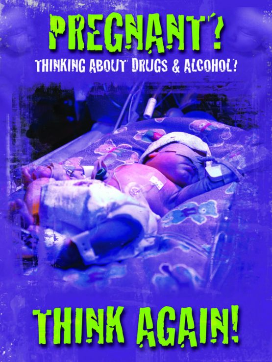 This very colorful poster will send a clear message to pregnant women that smoking, drinking or doing drugs while pregnant can severely harm their babies.