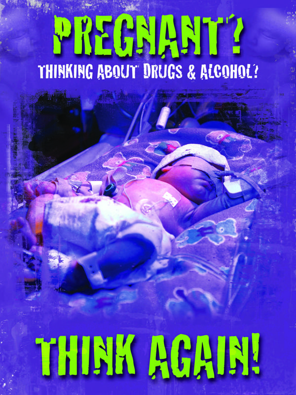 This very colorful poster will send a clear message to pregnant women that smoking, drinking or doing drugs while pregnant can severely harm their babies.