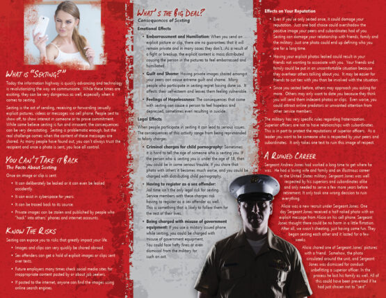 What is Sexting and how can it affect your time in the military? This pamphlet explains these and other issues with Sexting.