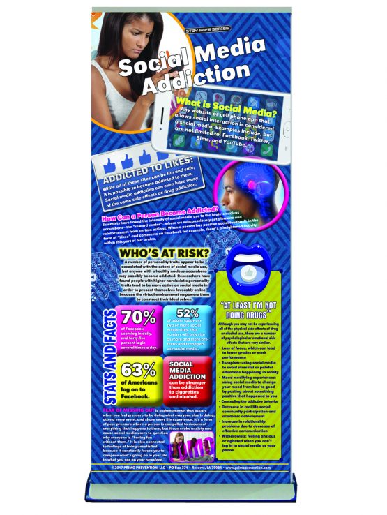 Portable, eye-catching, and professional. Use this colorful retractable banner to help educate others on the dangers of being addicted to Social Media.