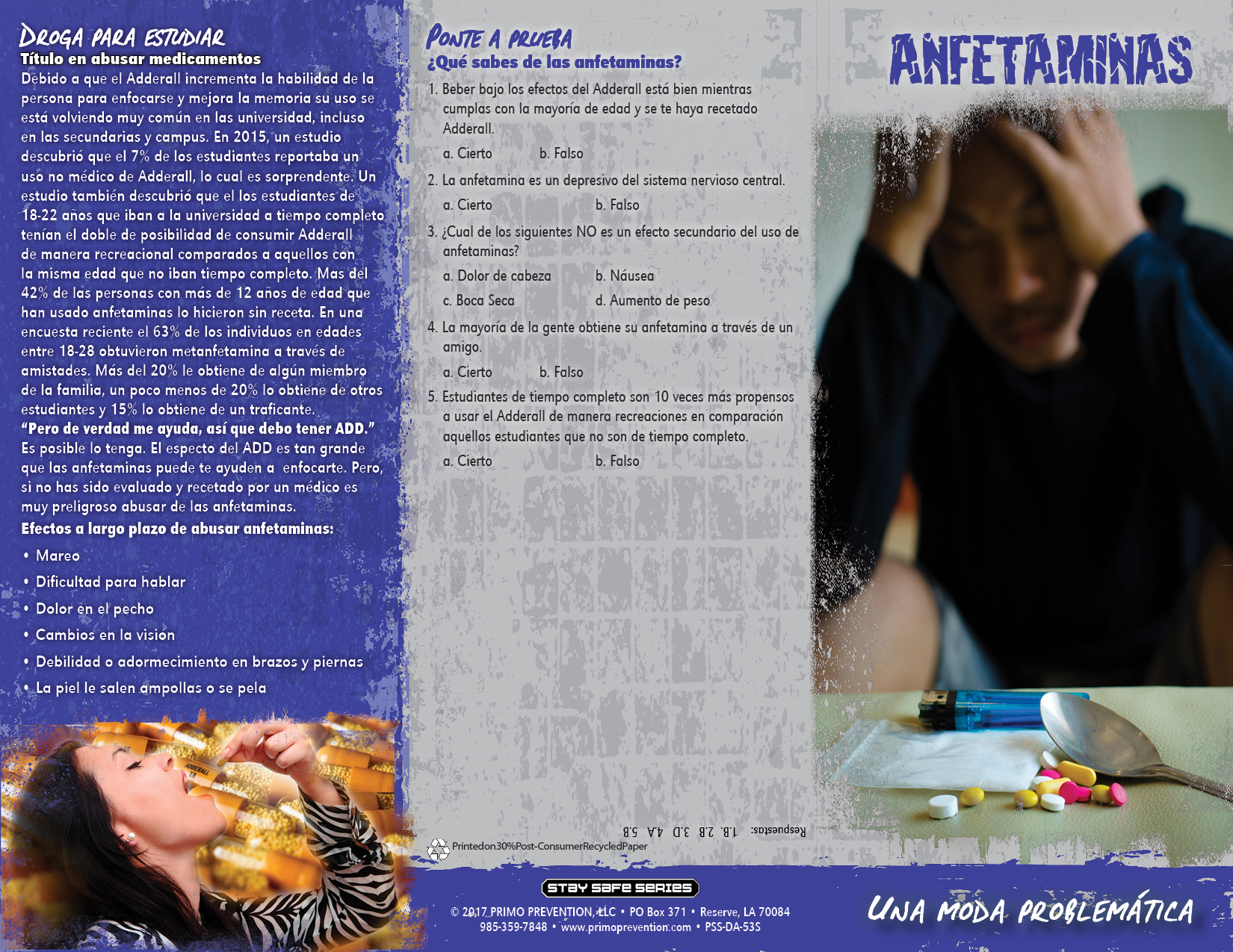 This pamphlet discusses the side effects of abusing these drugs, such as Adderall. It also discusses how mixing these drugs with other drugs or alcohol can make for a deadly combination.